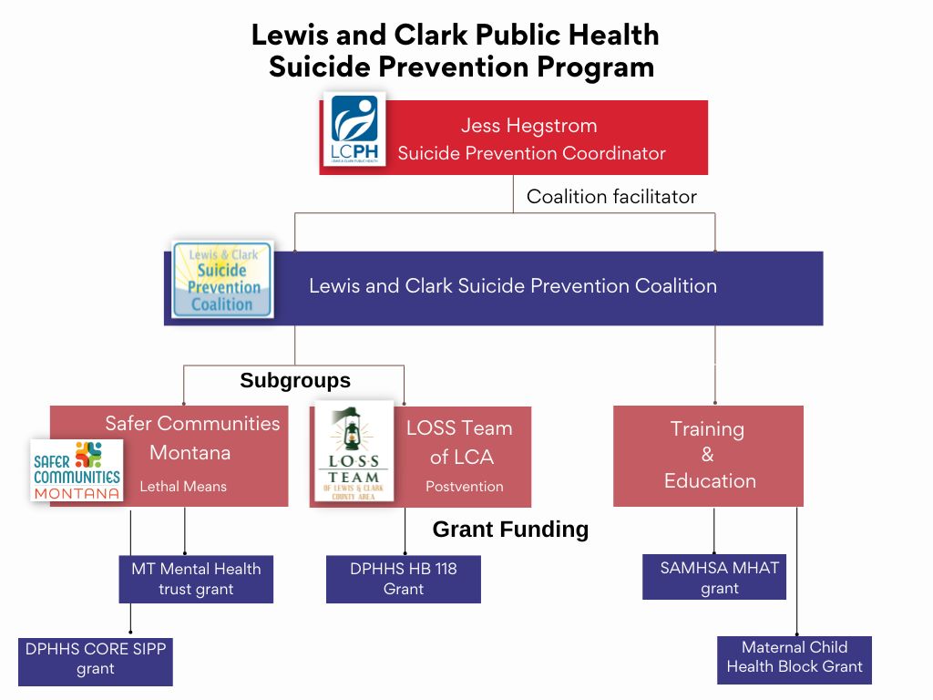 - Support after a Suicide loss (postvention) – providing guidance and care to people newly bereaved by suicide through the LOSS Team of the Lewis and Clark County Area.
