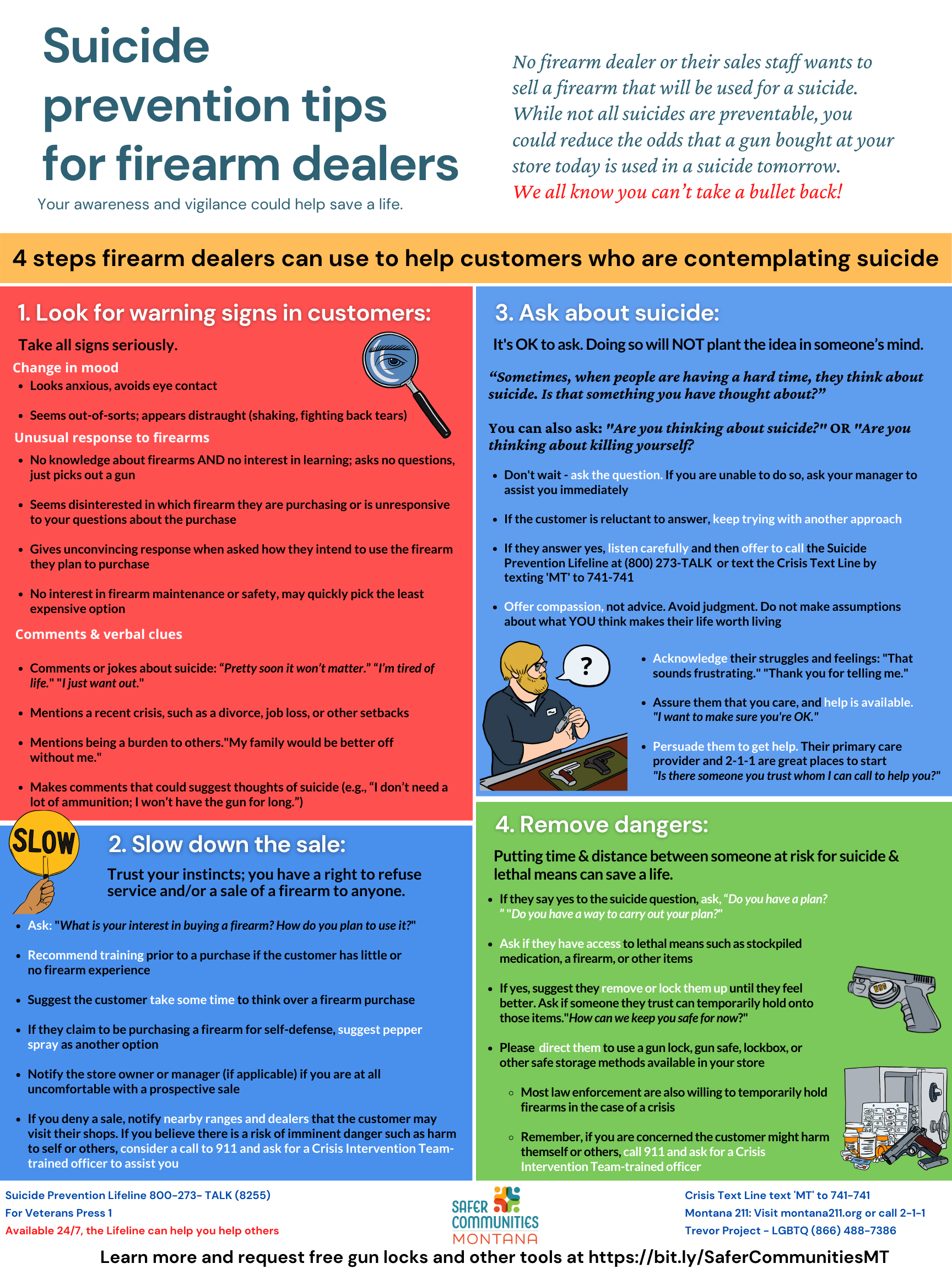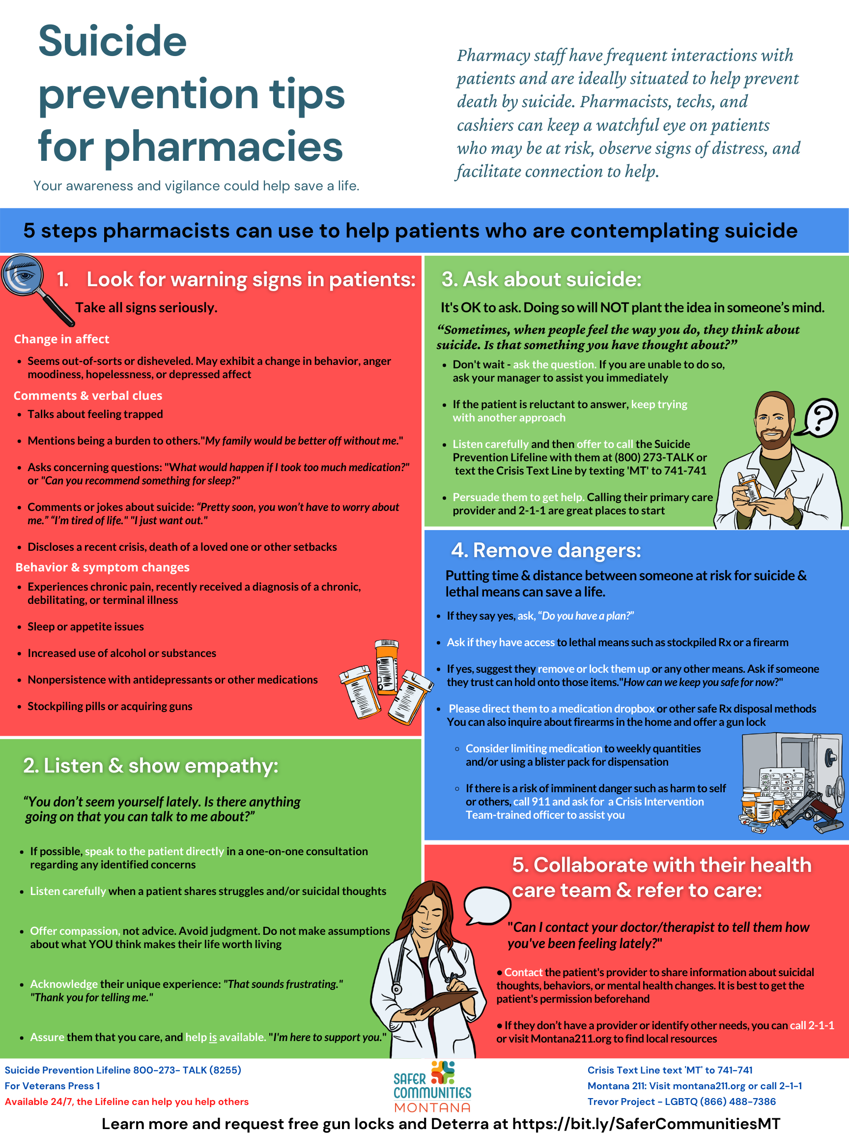 Help us prevent suicide by sharing how friends can help friends and loved ones with temporary safe storage in our community. Request free gunlocks, drug deactivation kits and materials through the form below.